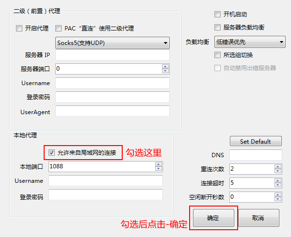 第2步:勾選 - 允許來自區域網的連接,點擊 - 確定