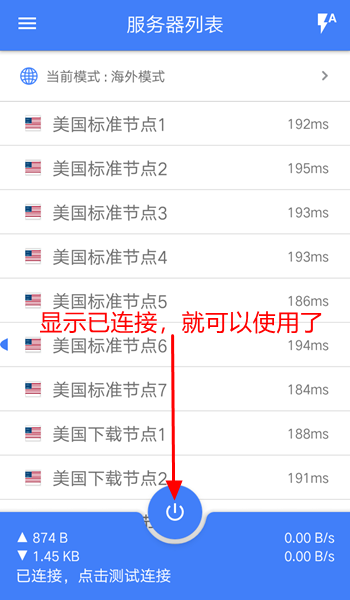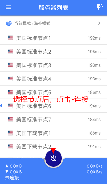 第3步:点击选择 - 服务器列表上的节点,点击 - 按钮连接使用(如图)
