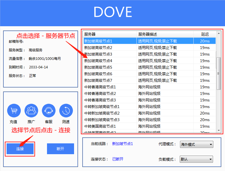 | 点击 -下载DOVE客户端:版本号1.71 |