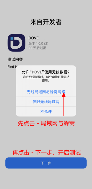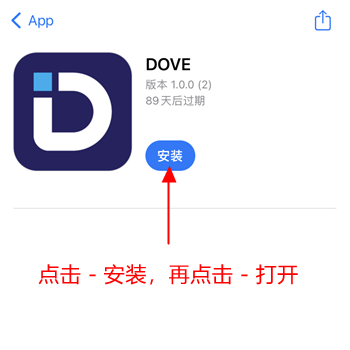 第2步:安装完TectFlight,点击下面连接 - 安装DOVE,点击 - 安装,再点击 - 打开