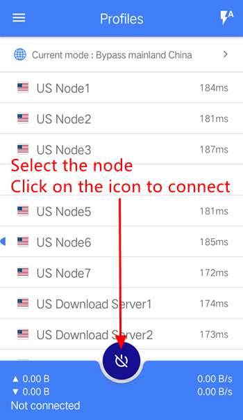 Step 3:Click to select the node on the server list and click the icon button to connect to use