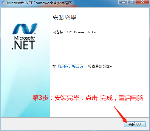 第3步:完成完毕后,点击 - 完成然后 - 重启电脑